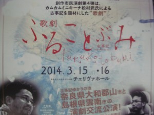 ふることぶみは、古事記そのものを松村武(劇団カムカムミニキーナ主宰)さんが舞台作品としてまとめたもので、昨年、奈良県大和郡山市の市民劇団によって初演されました。