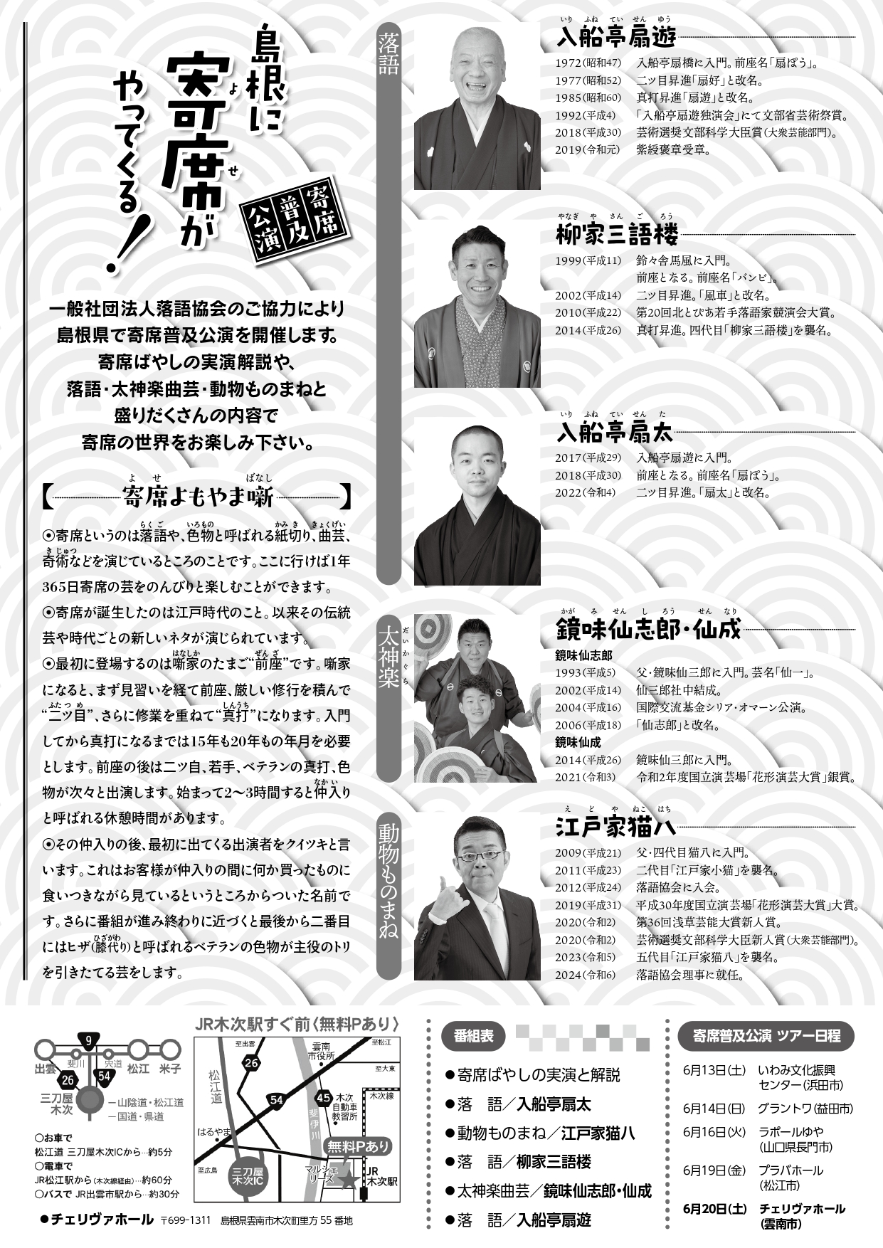 一般社団法人落語協会のご協力により島根県で寄席普及公演を開催します。
